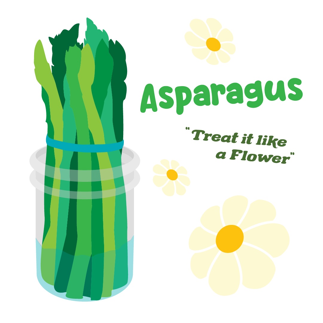NOTE: Stand your asparagus up in a cup or jar with some water and store it in the fridge when you get it home