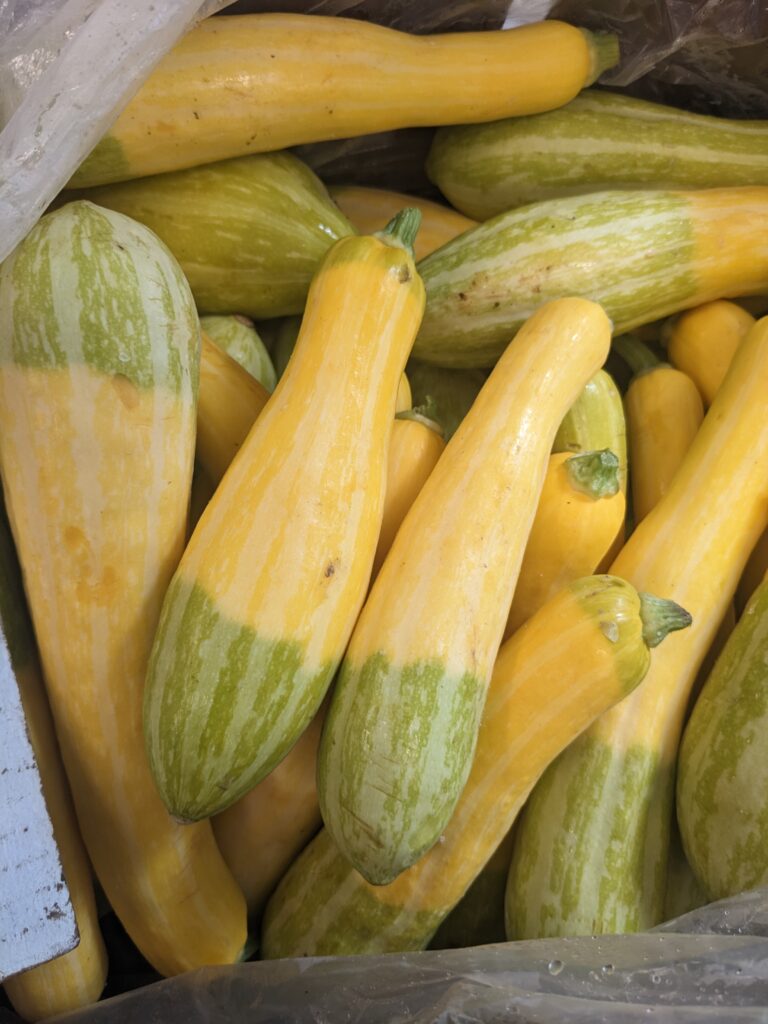 New: Garlic Scapes, Bunch Onions (bigger than green/spring onions), Mini Daikon Radishes, Patty Pan Squash, Zephyr Squash