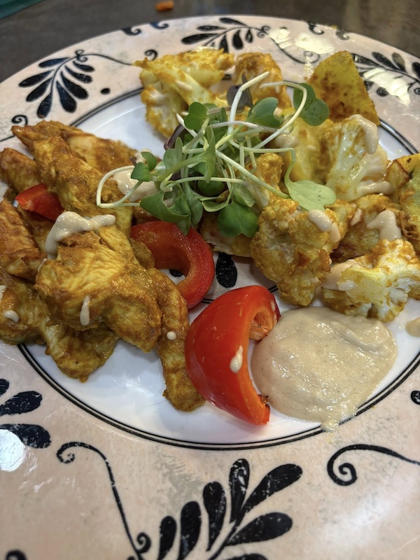 Here’s a fun and different side dish for thanksgiving or any occasion. It’s got a bit of sweet, a bit of tang, and a lot of flavor with very little effort. If you are lucky to get purple cauliflower it’s also gorgeous!